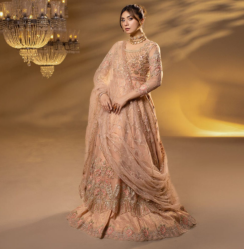 Zahra Rubab ZR-2501 | PEACH | Readymade Gown | Party Wear Dress