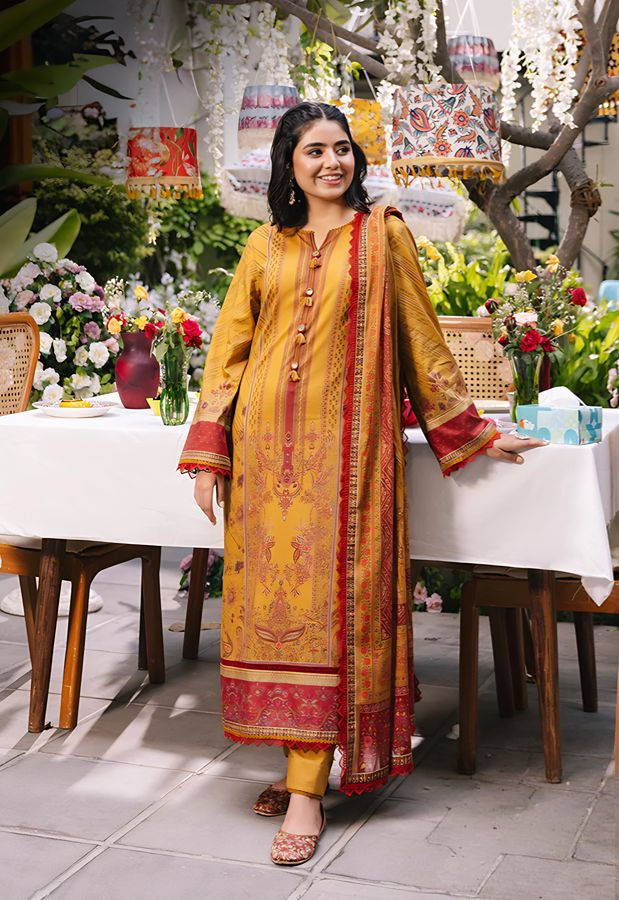 Immerse yourself in bold elegance with this Yellow ensemble. The intricately designed eastern motifs bring a touch of tradition, while the complementing dupatta adds a graceful finish. Perfect for any occasion, this set beautifully combines cultural charm and vibrant colors.