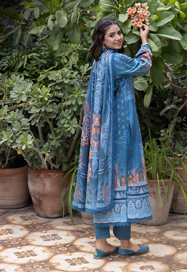 Immerse yourself in bold elegance with this Blue ensemble. The intricately designed eastern motifs bring a touch of tradition, while the complementing dupatta adds a graceful finish. Perfect for any occasion, this set beautifully combines cultural charm and vibrant colors.