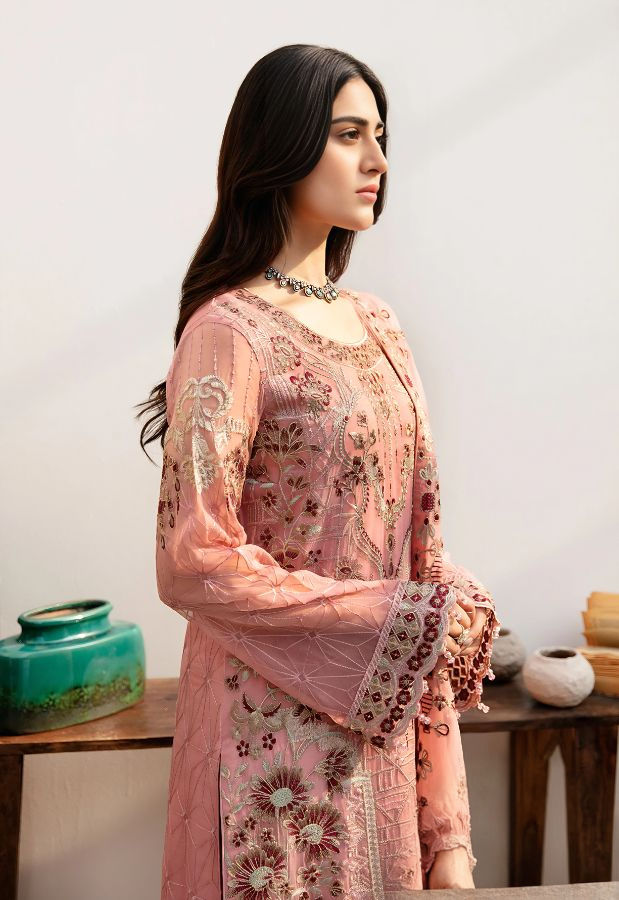 - Trouser: Raw silk (2.5 meters) with embroidered organza lace
